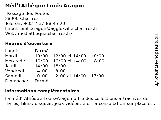 | Mardi | 10:00-12:00 et 14:00-18:00 |