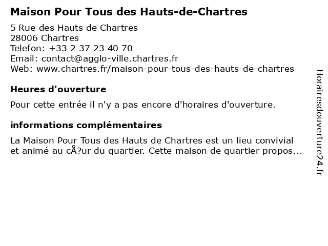 | Appeler Maison Pour Tous des Hauts-de-Chartres | |