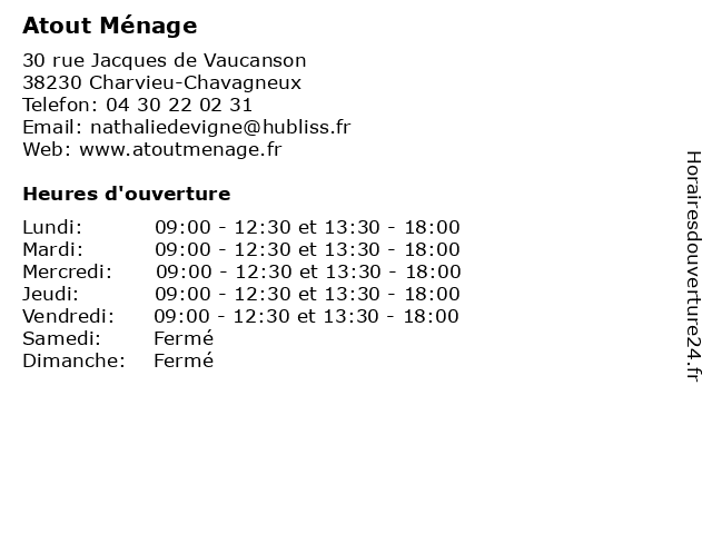 | Lundi | 09:00-12:30 et 13:30-18:00 |