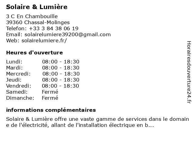 | Samedi | Fermé |
