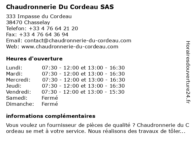 Termes de recherche pour Chaudronnerie Du Cordeau SAS:du, sas, chaudronnerie, cordeau |