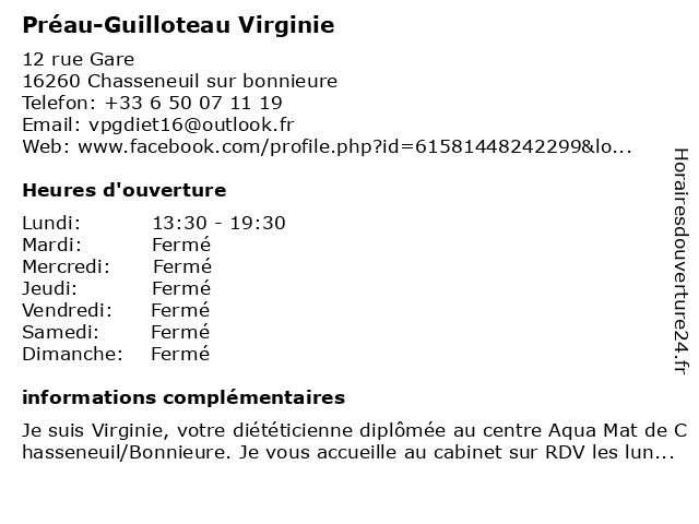1 Virginie Goursaud - Psychologue (Distance: 20,80 km) 4 Chemin des Bouvières, 16150 Chabanais folie, goursaud, psychiatre, psychiatrie, psychiatrique, psychologue, virginie 2 Dr Virginie Hau Lafourcade - Médecin généraliste (Distance: 26,27 km) 2 Avenue de Montbron, 16340 L'Isle-d'Espagnac consultation, dr, généraliste, hau, lafourcade, médecin, soins, virginie 3 Virginie Preau-Guilloteau - Diététicienne Nutritionniste (Distance: 28,61 km) 2 chemin de Frégeneuil, 16800 Soyaux consultation, diététicienne, docteur, guilloteau, med, médecin, médecine, nutritionniste, preau, traitement, virginie 4 Préau-Guilloteau Virginie (Distance: 28,62 km) 2 Chemin de Fregeneuil, 16800 Soyaux guilloteau, préau, virginie 5 Maître Virginie Mornaud - Avocate (Distance: 30,05 km) 195 rue de la Tourgarnier, 16000 Angouleme avocat, avocate, droit, juridictionnelle, maître, mornaud, négociation, virginie 6 Maître Virginie Barraud-Le Boulc'h - Avocate (Distance: 30,38 km) 23 place Bouillaud, 16000 Angoulême avocat, avocate, barraud, boulc'h, droit, juridictionnelle, le, maître, négociation, virginie |