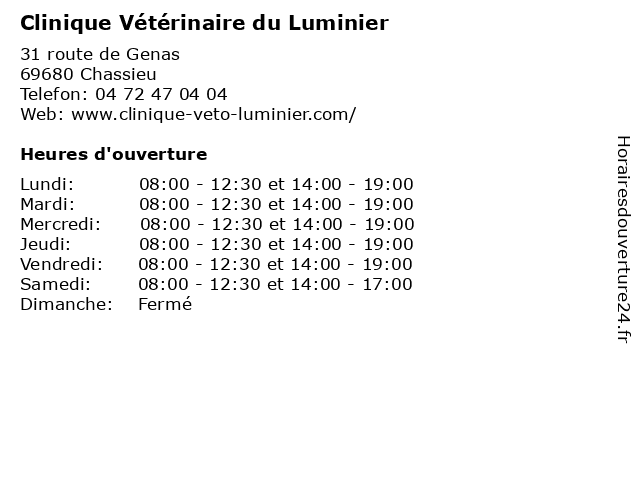 Lundi | 08:00-12:30 et 14:00-19:00 |