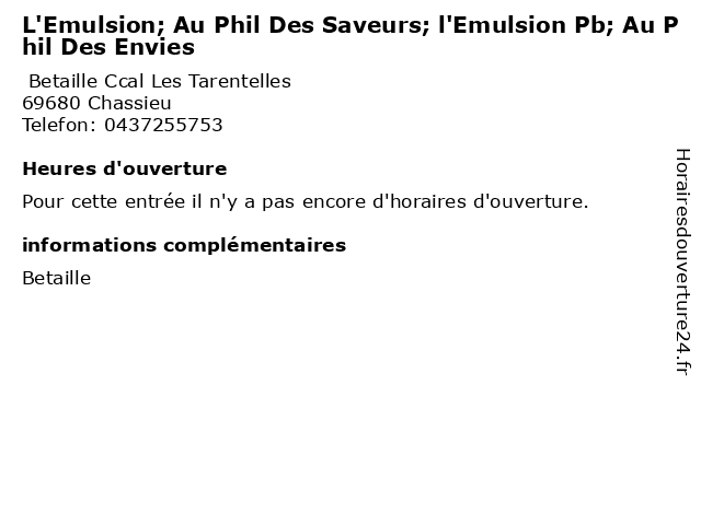 | Appeler L'Emulsion; Au Phil Des Saveurs; l'Emulsion Pb; Au Phil Des Envies | |
