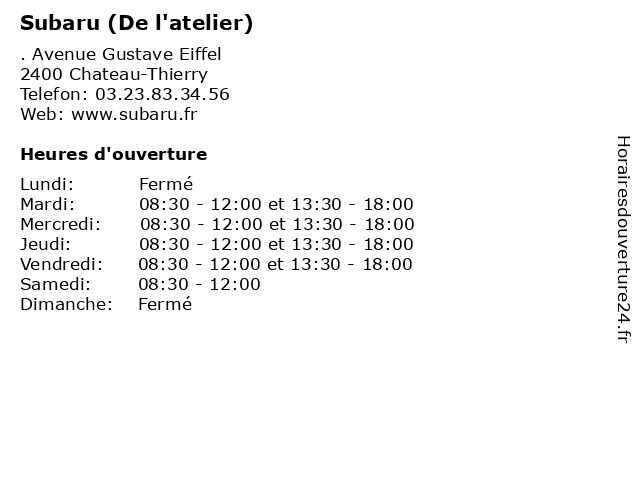 | Mardi | 08:30-12:00 et 13:30-18:00 |