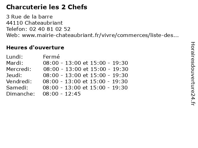 Termes de recherche pour Charcuterie les 2 Chefs:les, chateaubriant, boucherie, charcuterie, chefs |