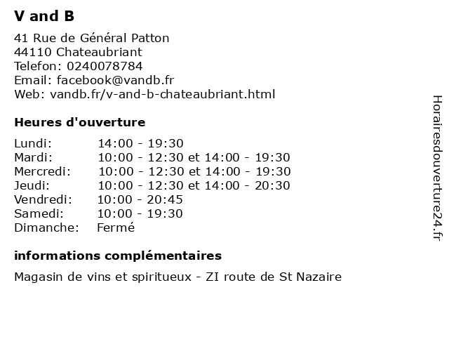 1 Le S Shoes and Style (Distance: 0,17 km) 1 Rue du general Eisenhower, 44110 Chateaubriant and, chateaubriant, le, mode, shoes, style 2 VIN'SERVICE (Distance: 0,31 km) 5 Rue Du Quebec, 44110 CHATEAUBRIANT accessoires et pièces automobiles, magasin de freins, personnalisation automobile, service de restauration automobile, vin'service 3 4 La Cave de Céline (Distance: 42,83 km) 39 Rue de rennes, 35230 Noyal chatillon sur seiche cave, caviste, céline, de, la, noyal chatillon sur seiche, vin 5 La Cave a Flo (Distance: 47,94 km) 3 Allée de bray, 35510 Cesson sevigne cave, caviste, cesson sevigne, flo, la, vin 6 La Cave d'Emeraude (Distance: 48,45 km) 17 bis Rue garengeot, 35500 Vitré cave, caviste, d'emeraude, la, vin, vitré |