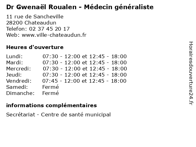 | Lundi | 07:30-12:00 et 12:45-18:00 |