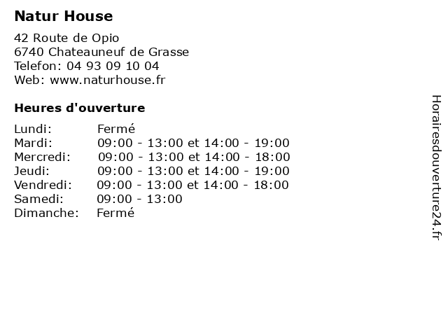 | Jeudi | 09:00-13:00 et 14:00-19:00 |