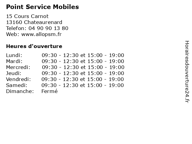 | Mercredi | 09:30-12:30 et 15:00-19:00 |
