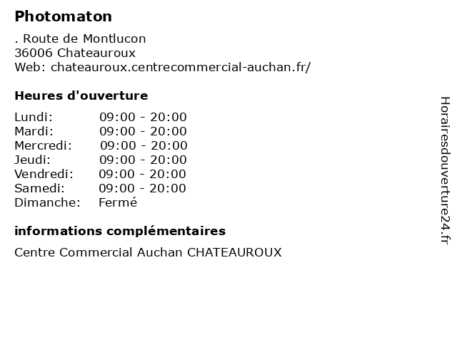 6 Photomaton (Distance: 5,26 km)40 Avenue d'Argenton, 36000 Châteauroux photomaton |