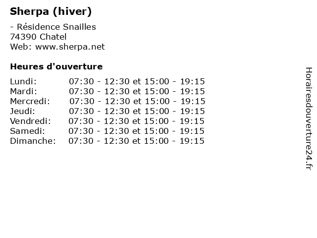 1 Sherpa (hiver) (Distance: 9,44 km) 61 Place du Snow, 74110 Morzine fondue ou pierre à griller, hiver, la commande en ligne, le prêt d’appareils à raclette, marche, sherpa, supermarche 2 Sherpa (hiver) (Distance: 9,54 km) 103 Passage du Malinka, 74110 Morzine fondue ou pierre à griller, hiver, la commande en ligne, le prêt d’appareils à raclette, marche, sherpa, supermarche 3 Sherpa (hiver) (Distance: 15,82 km) 71 route de la Télécabine, 74430 St Jean d'Aulps fondue ou pierre à griller, hiver, la commande en ligne, le prêt d’appareils à raclette, marche, sherpa, supermarche 4 Sherpa (hiver) (Distance: 17,09 km) - Les sapins - Station, 74500 Thollon les mémises fondue ou pierre à griller, hiver, la commande en ligne, le prêt d’appareils à raclette, marche, sherpa, supermarche 5 Sherpa (hiver) (Distance: 19,27 km) 201 Route des Perrières, 74260 Les Gets fondue ou pierre à griller, hiver, la commande en ligne, le prêt d’appareils à raclette, marche, sherpa, supermarche 6 Sherpa (été ) (Distance: 0,00 km) - Résidence Snailles, 74390 Chatel fondue ou pierre à griller, la commande en ligne, le prêt d’appareils à raclette, marche, sherpa, supermarche, été |