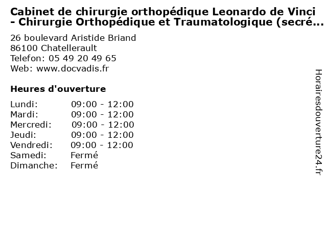 Termes de recherche pour Cabinet de chirurgie orthopédique Leonardo de Vinci - Chirurgie Orthopédique et Traumatologique (secrétariat ):et, de, cabinet, santé, leonardo, vinci, secretariat, chirurgie, docteur, consultation, orthopédique, traumatologique |