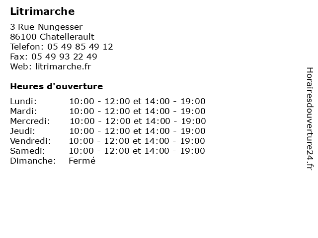 | Mardi | 10:00-12:00 et 14:00-19:00 |