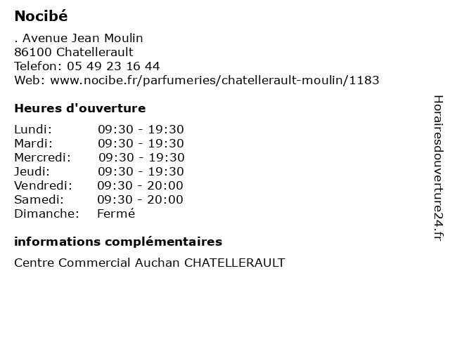 1 Nocibé (Distance: 2,25 km) 95 Boulevard de Blossac, 86100 Chatellerault beauté, maquillage, nocibé, parfumerie 3 Nocibé (Distance: 19,86 km) - Avenue du futuroscope, 86360 Chasseneuil-du-Poitou beauté, maquillage, nocibé, parfumerie 4 Nocibé (Distance: 19,91 km) 10 Nationale, 86360 Chasseneuil du Poitou cafe, chaussures, enfants, homme, lingerie, mode femme, nocibé, restaurant, service 5 Nocibé (Distance: 20,22 km) . Chasseneuil du Poitou, 86360 Chasseneuil du Poitou beaute, boutiques, brasserie, cache, chaussures, concorde, d'or, deco, enfants, mode femme, mode hommes, nocibé, restaurant, sport 6 Nocibé (Distance: 27,97 km) 4 Rue Henri Oudin, 86000 Poitiers cosmétique, maquillage, nocibé, parfum, parfumerie |