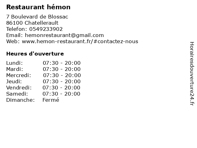 | Lundi | 07:30-20:00 |