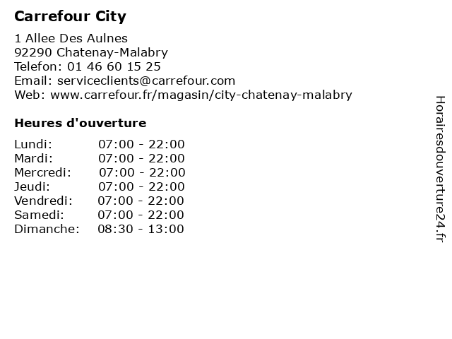 1 Carrefour City (Distance: 1,69 km) 76-78 avenue Charles de Gaulle, 92350 Le Plessis-Robinson carrefour, city, hard discount, hypermarchés, les dépanneurs, supermarchés 2 Carrefour City (Distance: 2,94 km) 53 boulevard de Vanves, 92320 Châtillon alimentation, carrefour, city, magasin discount, market, supermarché 3 Carrefour City (Distance: 5,06 km) 14 boulevard Voltaire, 92130 Issy-les-Moulineaux carrefour, city, hard discount, hypermarchés, les dépanneurs, supermarchés 4 Carrefour City (Distance: 6,07 km) 9 Rue d'Arcueil, 94250 Gentilly alimentation, carrefour, city, magasin discount, market, supermarché 5 Carrefour City (Distance: 6,20 km) 25 rue Desnouettes, 75015 Paris carrefour, city, hard discount, hypermarchés, les dépanneurs, supermarchés 6 Carrefour City (Distance: 6,88 km) 154 rue Saint-Charles, 75015 Paris alimentaire, alimentation, carrefour, city, courses, distributeur, hypermarché, supermarché, épicerie |