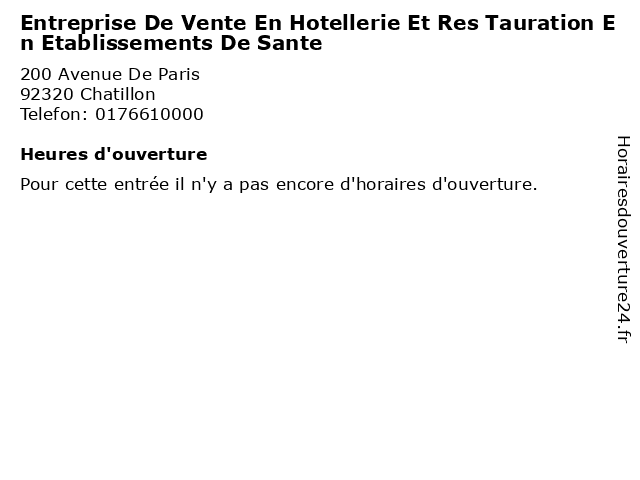| Appeler Entreprise De Vente En Hotellerie Et Res Tauration En Etablissements De Sante | |