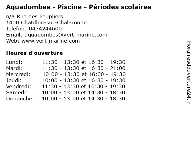 | Dimanche | 10:00-13:00 et 14:30-18:30 |