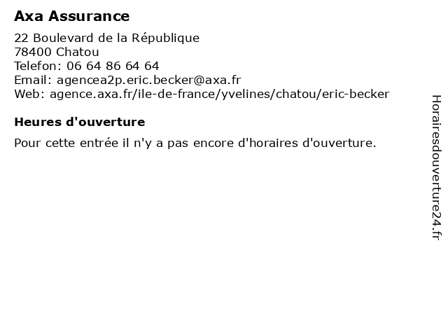 1 Axa Assurance (Distance: 3,13 km) 18 Rue Du Fort, 92500 Rueil-Malmaison assurance, assurance prêt, assurances, axa, services 2 Axa Assurance (Distance: 3,48 km) 57 Residence Elysee 2, 78170 La Celle Saint Cloud assurance, assurance prêt, assurances, axa, services 3 Axa Assurance (Distance: 6,05 km) 37 Rue d'Acheres, 78600 Maisons Laffitte assurance, assurance prêt, assurances, axa, services 4 Axa Assurance (Distance: 6,13 km) 10 Rue Des Plantes, 78600 Maisons Laffitte assurance, assurance prêt, assurances, axa, services 5 Axa Assurance (Distance: 6,16 km) 2 Avenue Egle, 78600 Maisons Laffitte assurance, assurance prêt, assurances, axa, services 6 Axa Assurance (Distance: 8,33 km) 16 Boulevard Du Parc, 92200 Neuilly-sur-Seine assurance, assurance prêt, assurances, axa, services |