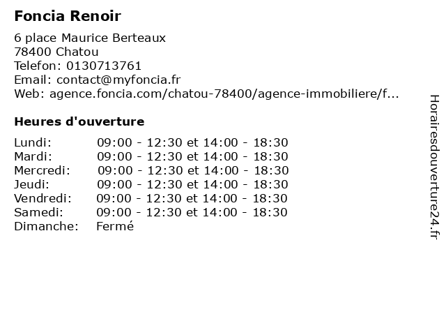 | Lundi | 09:00-12:30 et 14:00-18:30 |