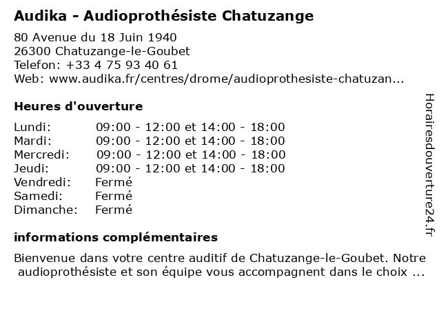 Termes de recherche pour Audika - Audioprothésiste Chatuzange:appareil auditif, chatuzange, audika, audioprothésiste, specialiste audition, audiologiste, centre auditif |