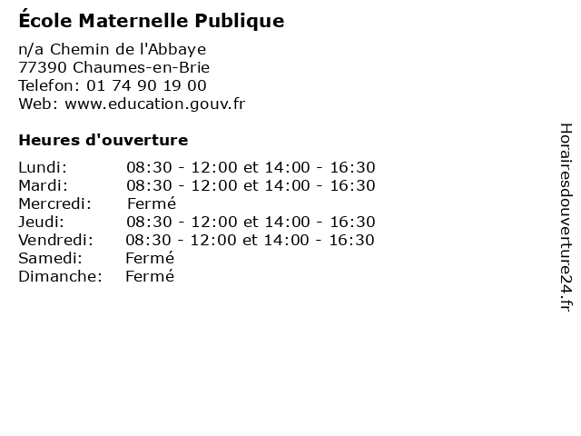 | Mardi | 08:30-12:00 et 14:00-16:30 |