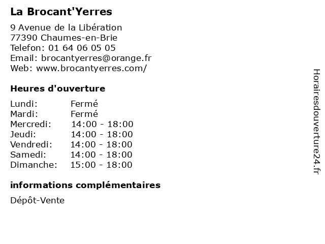 | Lundi | Fermé |