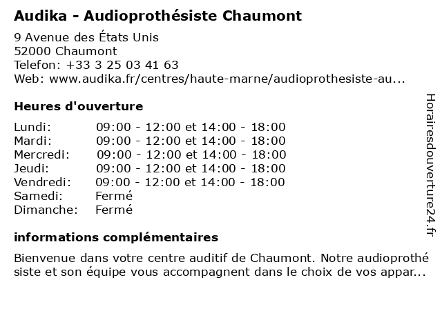 Termes de recherche pour Audika - Audioprothésiste Chaumont:chaumont, appareil auditif, audika, audioprothésiste, specialiste audition, audiologiste, centre auditif |
