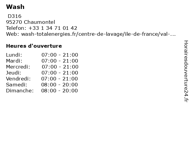 5 Wash (Distance: 11,30 km)48 Rue De L'Isle Adam, 95260 Beaumont-sur-Oise wash