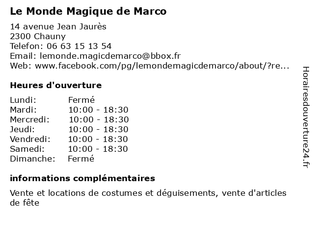 | Lundi | Fermé |