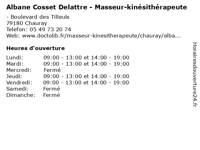 | Mardi | 09:00-13:00 et 14:00-19:00 |