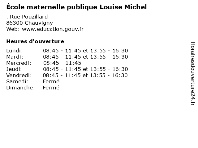 | Lundi | 08:45-11:45 et 13:55-16:30 |