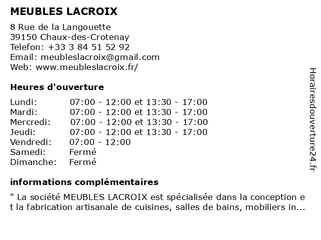 Lundi | 07:00-12:00 et 13:30-17:00 |