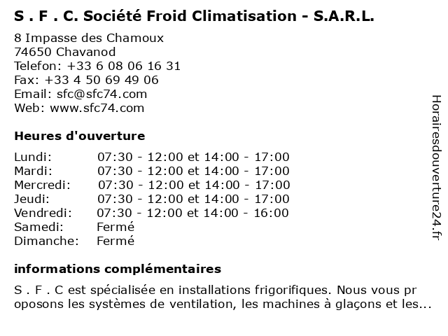 Termes de recherche pour S . F . C. Société Froid Climatisation - S.A.R.L.:climatisation, societe, c., s.a.r.l., froid |