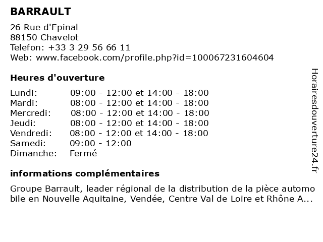 1 BARRAULT (Distance: 37,34 km)37 Route de Raon, 88100 Saint-Dié-des-Vosges barrault