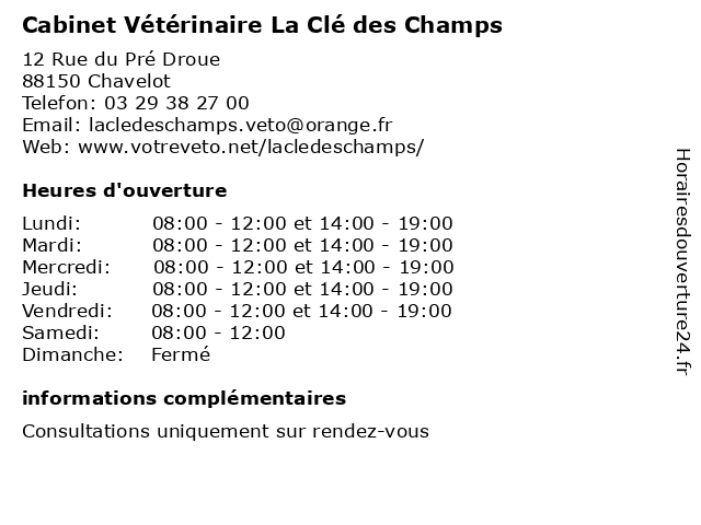 Termes de recherche pour Cabinet Vétérinaire La Clé des Champs:la, champs, des, cabinet, veterinaire, cle, animaux, alimentation canine et feline |
