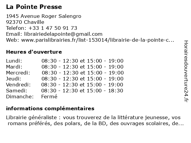 | Samedi | 08:30-12:30 et 15:00-18:30 |