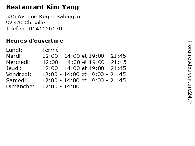 | Mardi | 12:00-14:00 et 19:00-21:45 |