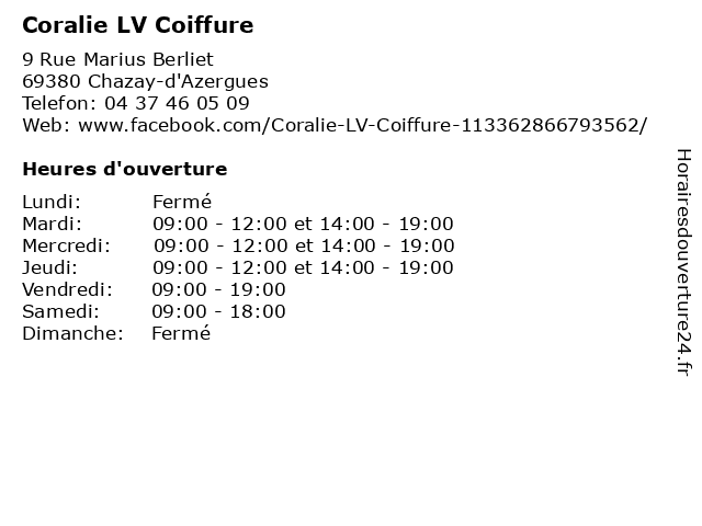 | Mardi | 09:00-12:00 et 14:00-19:00 |