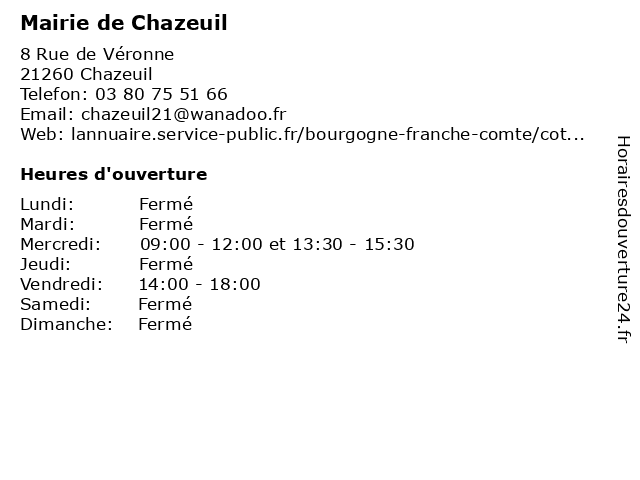 Termes de recherche pour Mairie de Chazeuil:de, administration, mairie, chazeuil, service public |