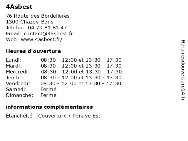 | Lundi | 08:30-12:00 et 13:30-17:30 |