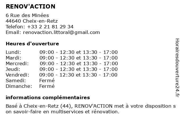 Horaires d'ouverture |