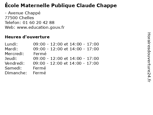 Lundi | 09:00-12:00 et 14:00-17:00 |