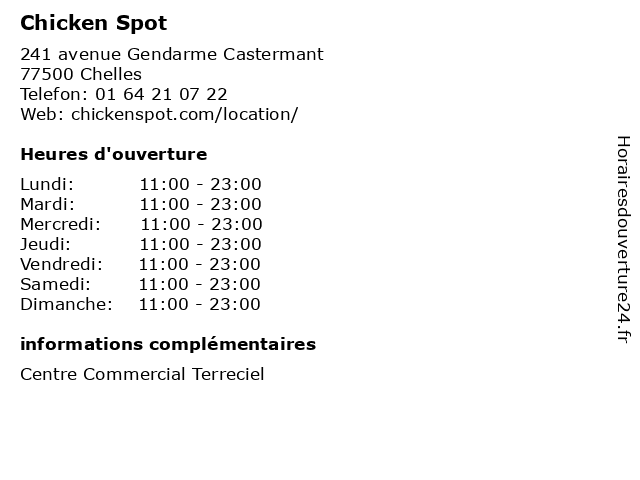 1 Chicken Spot (Distance: 0,02 km) . Gendarme Castermant, 77500 Chelles cafe, chaussures, chicken, enfants, homme, mode femme, restaurant, sport, spot 2 Chicken Spot (Distance: 1,18 km) Centre Cial Chelles 2 Lotissement 241, 77500 Chelles 777, chicken, city, restaurants, spot 3 Chicken Spot (Distance: 4,77 km) - Chemin de la Tourelle, 93390 Clichy Sous Bois chateau, chicken, restaurants, spot 4 Chicken Spot (Distance: 8,08 km) 49 Avenue Nelson Mandela, 93290 Tremblay-en-France bar, bistro, bistrot, brasserie, café, chicken, pub, restaurant, restauration, resto, spot 5 Chicken Spot (Distance: 8,96 km) 83 avenue de la République, 94500 Champigny-sur-Marne burgers, chicken, fast food, poulet, restaurant, restauration rapide, sandwichs, spot 6 Chicken Spot (Distance: 11,43 km) - Boulevard Maurice Thorez, 93000 Bobigny alimentation, chicken, dessert, restauration, spot |