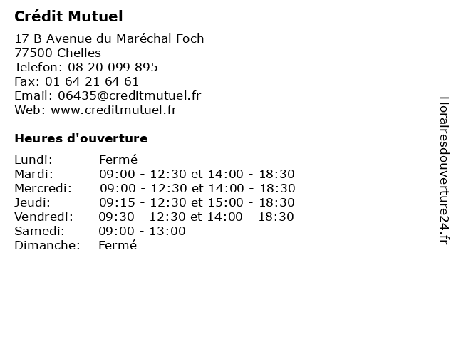 1 Crédit Mutuel (Distance: 0,04 km) 17 B Avenue Du Marechal Foch, 77500 Chelles compagnie de téléphone, crédit, mutuel, organisme d'assurance 2 Crédit Mutuel (Distance: 1,08 km) 1 Avenue Paul Doumer, 93460 Gournay Sur Marne compagnie de téléphone, crédit, mutuel, organisme d'assurance 3 Crédit Mutuel (Distance: 1,45 km) 43 Boulevard Pierre Mendes France, 77500 Chelles compagnie de téléphone, crédit, mutuel, organisme d'assurance 4 Crédit Mutuel (Distance: 1,45 km) 43 Boulevard Pierre Mendès France, 77500 Chelles agence, assurance, bancaire, banque, crédit, mutuel 5 Crédit Mutuel (Distance: 6,10 km) 14 Place de la Gare, 94350 Villiers-sur-Marne agence, assurance, bancaire, banque, crédit, mutuel 6 Crédit Mutuel (Distance: 7,05 km) 20 Rue Du General Gallieni, 93110 Rosny Sous Bois compagnie de téléphone, crédit, mutuel, organisme d'assurance |