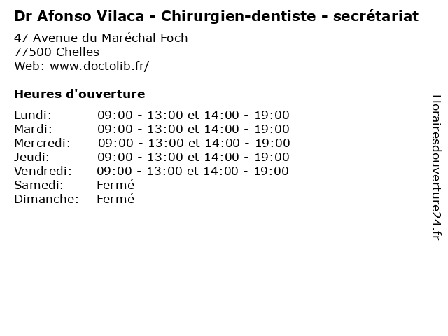 | Lundi | 09:00-13:00 et 14:00-19:00 |