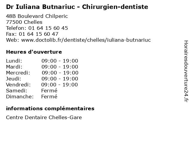 1 Dr Iuliana Butnariuc - Chirurgien-dentiste (Distance: 4,44 km) 15 Avenue du Général de Gaulle, 93330 Neuilly-sur-Marne avenir, butnariuc, centre, chirurgien, dentaire, dentiste, dr, implantologie, iuliana, médico, parodontologie 2 Fandache Petcu Iuliana Andreea (Distance: 18,72 km) 10 Rue Charles Peguy, 77410 Villeroy andreea, fandache, iuliana, petcu, restaurants 3 Dr Iuliana Elena Nita - Dermatologue et vénérologue (Distance: 20,69 km) 97 Rue Jouffroy d'Abbans, 75017 Paris boutons, dermatologue, docteur, dr, elena, et, iuliana, liason, nita, venerologue, vénérologue 4 Maître Iuliana Babei - Avocate (Distance: 20,96 km) 6 Avenue Marceau, 75008 Paris avocat, avocate, babei, iuliana, justice, lois, maitre, maître 5 Dr Iuliana Butnariuc - Chirurgien-dentiste (Distance: 23,23 km) 18 Avenue Jean Bureau, 77100 Meaux butnariuc, chirurgie, chirurgien, dentaire, dentiste, dr, iuliana 6 Dr Paula-Iuliana Bogheanu Dancu - Médecin généraliste (Distance: 25,35 km) 5 Square des Clématites, 95470 Survilliers bogheanu, dancu, docteur, dr, generaliste, généraliste, iuliana, medical, médecin, paula, soin  |