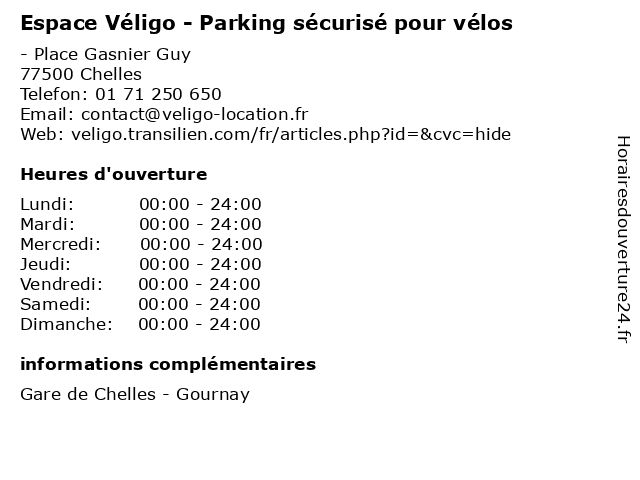 1 Espace Véligo - Parking sécurisé pour vélos (Distance: 13,08 km) 1 Place des Déportés, 93350 LE BOURGET abonnement, espace, location, parking, pour, sécurisé, sécurisés, transports, véligo, vélos 2 Onepark / Gare SNCF (Longue durée) Parking (Distance: 0,08 km) - Avenue du Maréchal de Lattre de Tassigny, 77500 Chelles durée, gare, longue, onepark, parking, services, sncf 3 Espace SFR (Distance: 2,09 km) . Gendarme Castermant, 77508 Chelles cafe, chaussures, enfants, espace, mode femmes, mode hommes, restaurant, sfr, sport 5 Espace Soleil (Distance: 4,39 km) 234 Boulevard du Mont d'Est, 93193 Noisy-le-Grand alimentation, beauté & santé, culture & loisirs, enfants, espace, high-tech, maison & déco, mode, restaurants, soleil 6 espace SFR (Distance: 4,39 km) 234 Boulevard du Mont d'Est, 93193 Noisy-le-Grand alimentation, beauté & santé, culture & loisirs, enfants, espace, high-tech, maison & déco, mode, restaurants, sfr |