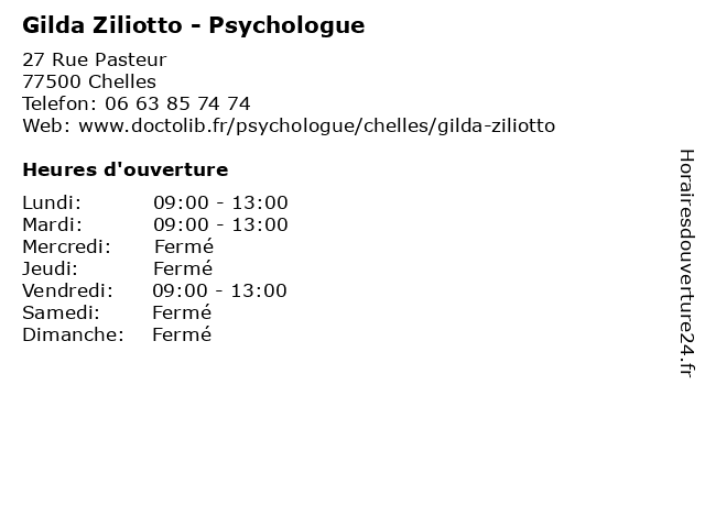1 Gilda Ziliotto - Psychologue (Distance: 16,80 km) 69 Rue d'Hauteville, 75010 Paris folie, gilda, psychiatre, psychiatrie, psychiatrique, psychologue, ziliotto 2 Dr Gilda Mirghane - Orthodontiste (Distance: 6,59 km) 44 Avenue Victor Hugo, 93320 Les Pavillons-sous-Bois dr, gilda, mirghane, médecin, médecine, médical, orthodontiste, pharmaceutique, traitement 3 Maître Gilda Licata - Avocate (Distance: 21,84 km) 8 Rue Decamps, 75016 Paris avocate, avocats, cabinet, conseils, contentieux, gilda, juridique, justice, licata, litiges, maître, services 4 Dr Gilda Mirghane - Orthodontiste (Distance: 24,87 km) 9 Rue Roque de Fillol, 92800 Puteaux consultation, docteur, dr, gilda, med, mirghane, médecin, orthodontiste, traitement 5 Dr Gilda Bonomo - Médecin du travail (Distance: 25,51 km) 55 rue Rouget de Lisle, 92150 Suresnes bonomo, consultation, docteur, dr, du, gilda, med, médecin, traitement, travail 6 Marion Chevreul - Psychologue (Distance: 0,00 km) 27 Rue Pasteur, 77500 Chelles chevreul, folie, marion, psychiatre, psychiatrie, psychiatrique, psychologue |